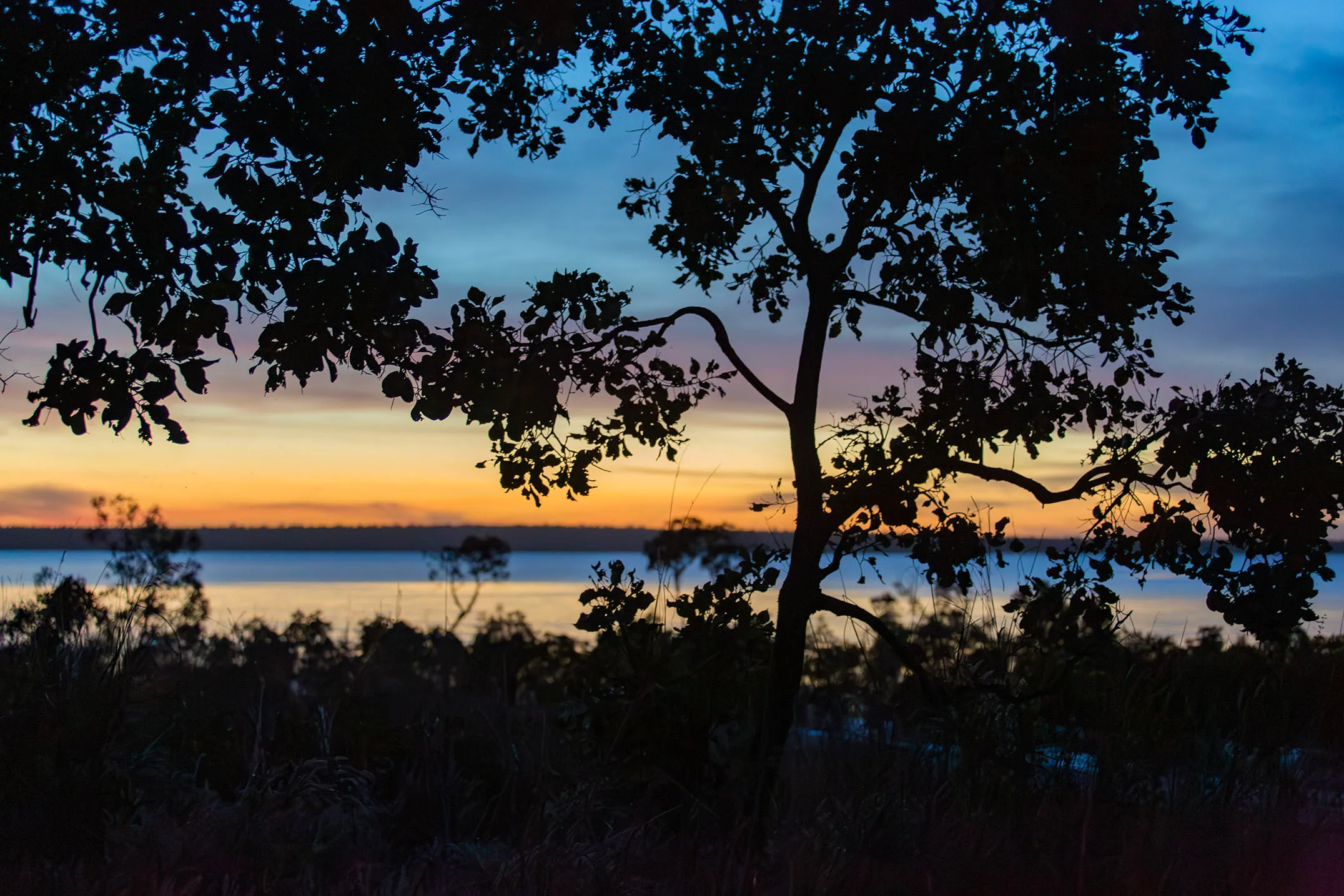 The next day the sun rises over wetland where the flooding rivers run clear again, both inviting in their cool sparkle and instantly deadly, knowledge is required here. In the wetlands the water is still and decorated with water lilies, many in bloom.